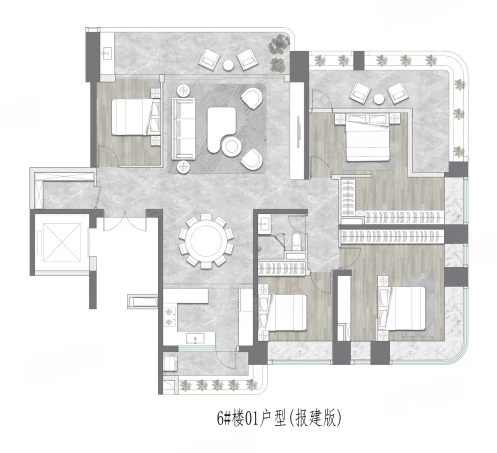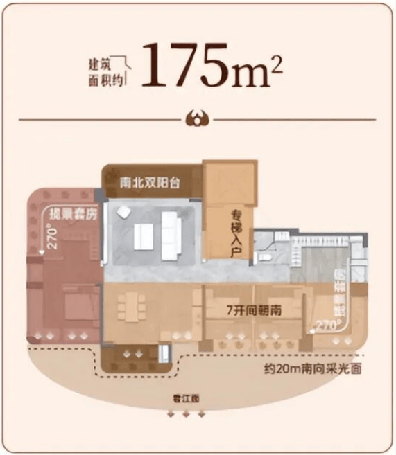 如果您追求更宽敞的居住空间和更极致的生活体验,那么175㎡四房户型绝对不容错过。这款户型的亮点鲜明,七开间朝南的罕见设计,搭配约20米的南向采光面,让阳光毫无保留地倾泻入室,整个屋子明亮通透,温暖如春。双阳台的设计巧妙实现了生活与景观的分离,一个用于晾晒衣物,保持整洁;另一个连接客厅,作为观景休闲的延伸空间,尽享江景风光。双套房布局更是满足了家人独立居住的需求,主卧和长辈房均配备独立卫生间,互不干扰,尊重彼此的生活习惯。南北对流的格局让室内空气时刻流通,清新自然,即使在炎热的夏季也能感受到丝丝凉意。客厅开间大气,足以容纳大型沙发和娱乐设施,是家庭聚会的核心区域。餐厅与厨房相邻,方便传菜和互动。四个卧室分布合理,动静分区明确,保证了休息的安宁。无论是二胎家庭还是三代同堂,这款户型都能轻松应对,提供充裕的生活空间。在这里,生活的尺度被重新定义,每一个日子都充满了阳光与欢笑,每一次相聚都显得格外珍贵。